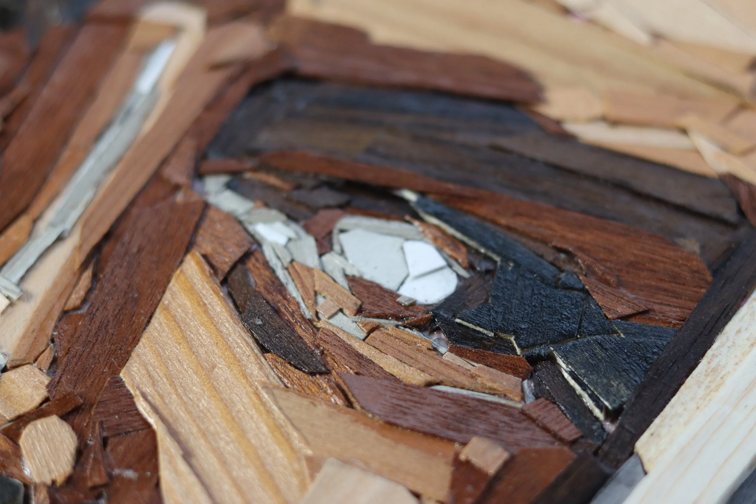 I wanted to fully commit myself to a project that felt uncharted. The inspiration, of course, came from that iconic scene in The Shining—Jack Nicholson’s character, Jack, bursting through the door with a fireman’s axe, trying to reach his wife Wendy, played by Shelley Duvall, who’s fled in horror at what he’s become. I imagined that moment: the door shattering, and all the tiny splinters of wood flying and landing across the board.